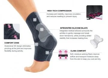 Suport pentru tendonul lui Ahile cu toc de silicon întegrat, modelat din punct de vedere anatomic.